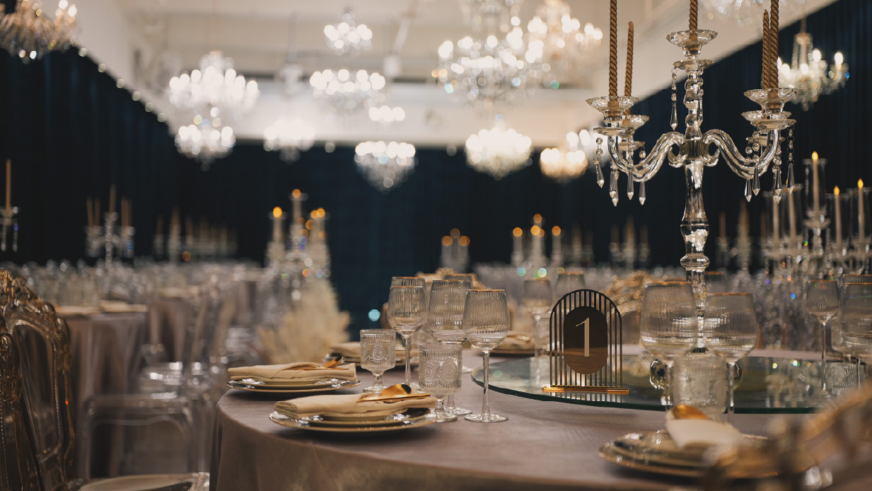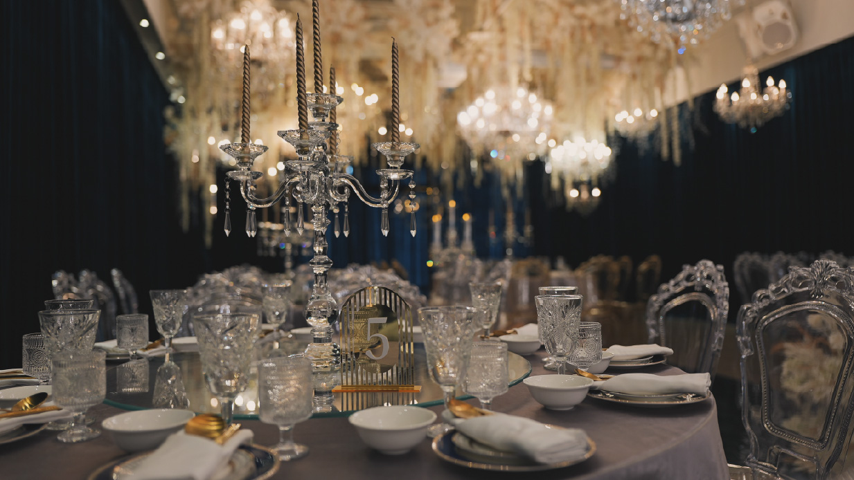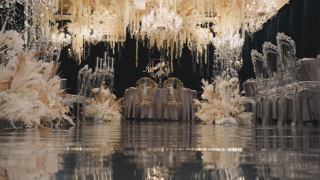 水晶吊燈與燭台點亮整個潮水綠簾幔,漫步鏡面星光步道,