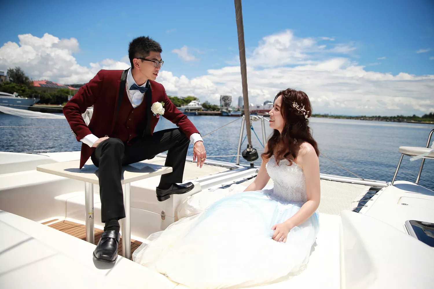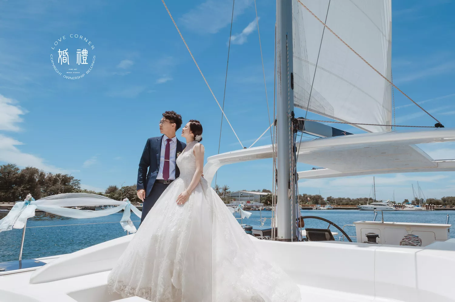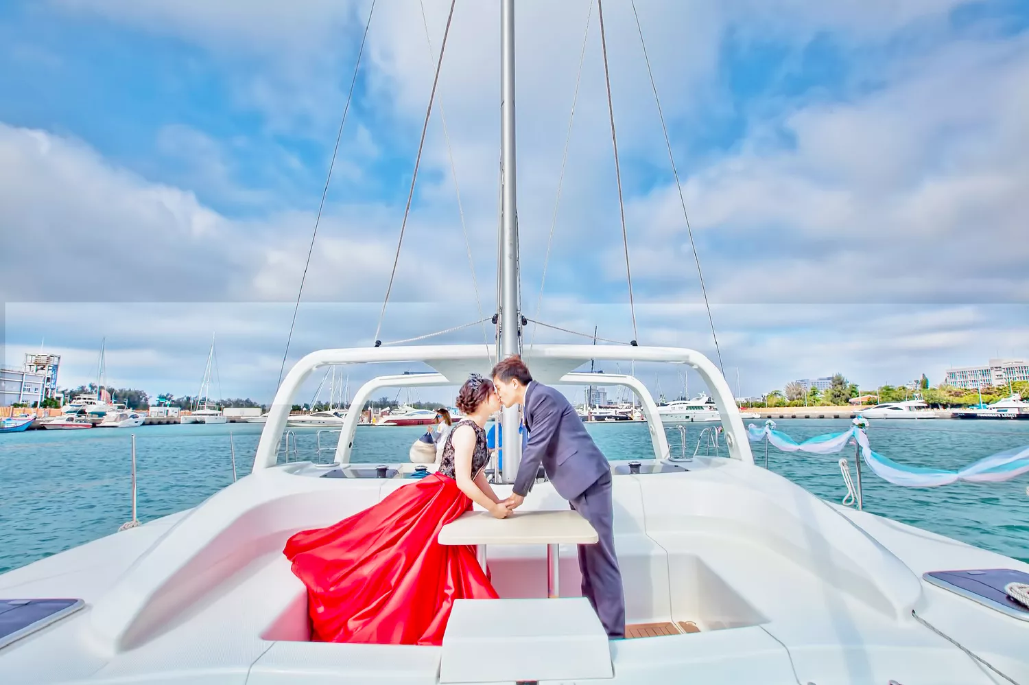 全台少見的特色進場方式!新人搭乘專屬白色帆船從海平面緩緩駛來,如電影般的夢幻場景,驚豔全場賓客,創造話題性十足的開場。