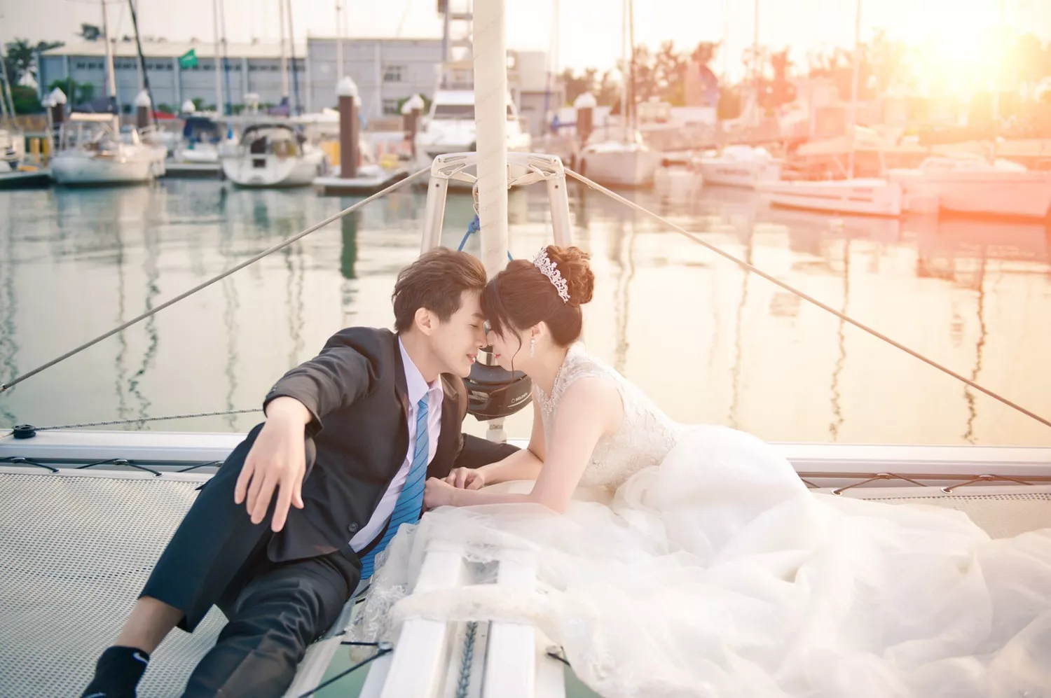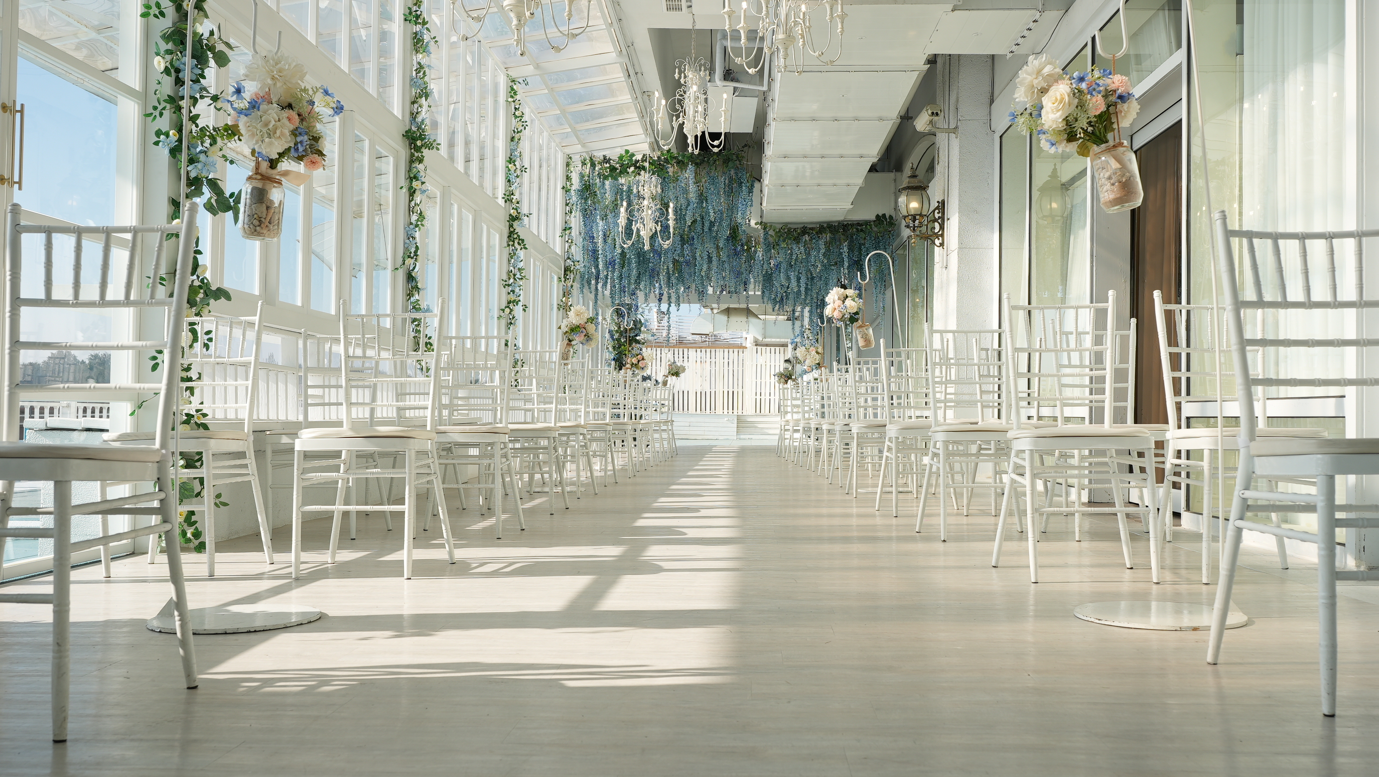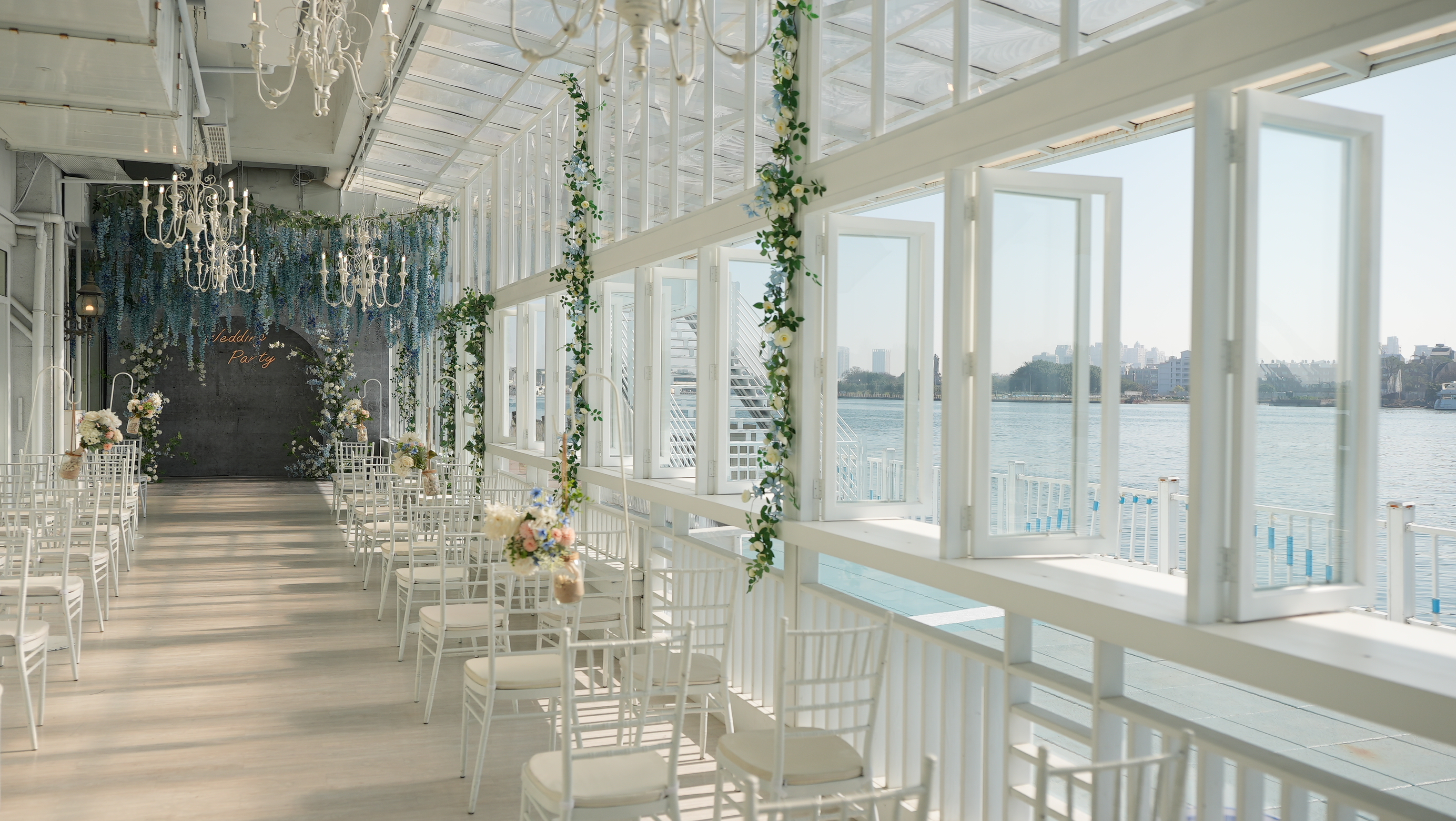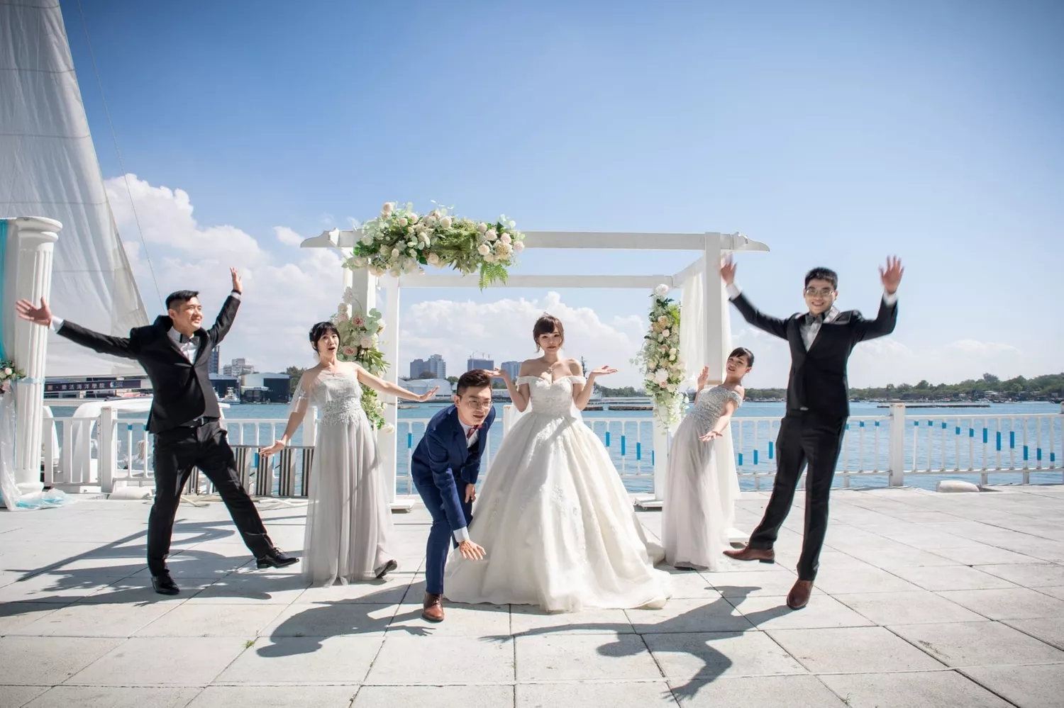 全台少見的特色進場方式!新人搭乘專屬白色帆船從海平面緩緩駛來,如電影般的夢幻場景,驚豔全場賓客,創造話題性十足的開場。